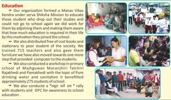 Our organization formed a Manav Vikas Kendra under serva Shiksha Mission to educate those student who drop out their studies and could not go to school again. We did work for them by adjoining them and making them aware that how much education is required in their life by this motivation they joined the school .
